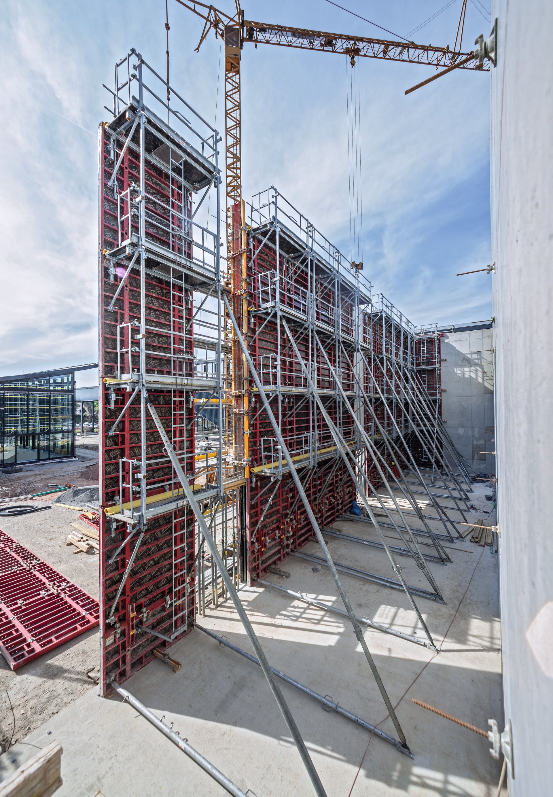 Die Anordnung der Bühnen ermöglicht ein einfaches Bedienen der Ankerstäbe sowie ein unkompliziertes Verbinden der Elemente.
