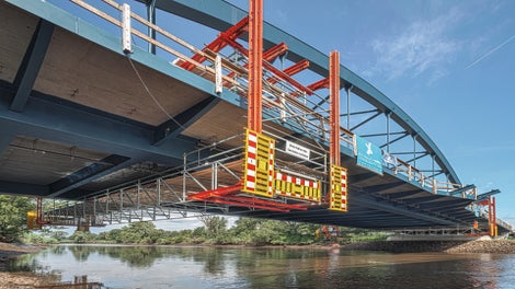 Das Gerüst lässt sich einfach an variable Stahlträgerabstände anpassen.