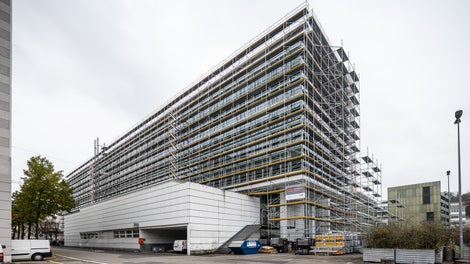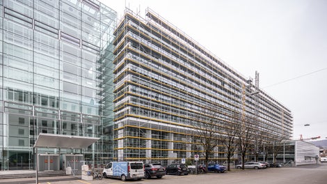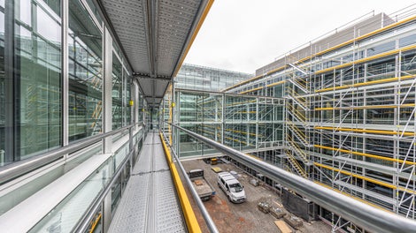 PERI UP Easy Fassadengerüst rund um den Konnex-Bau im Einsatz