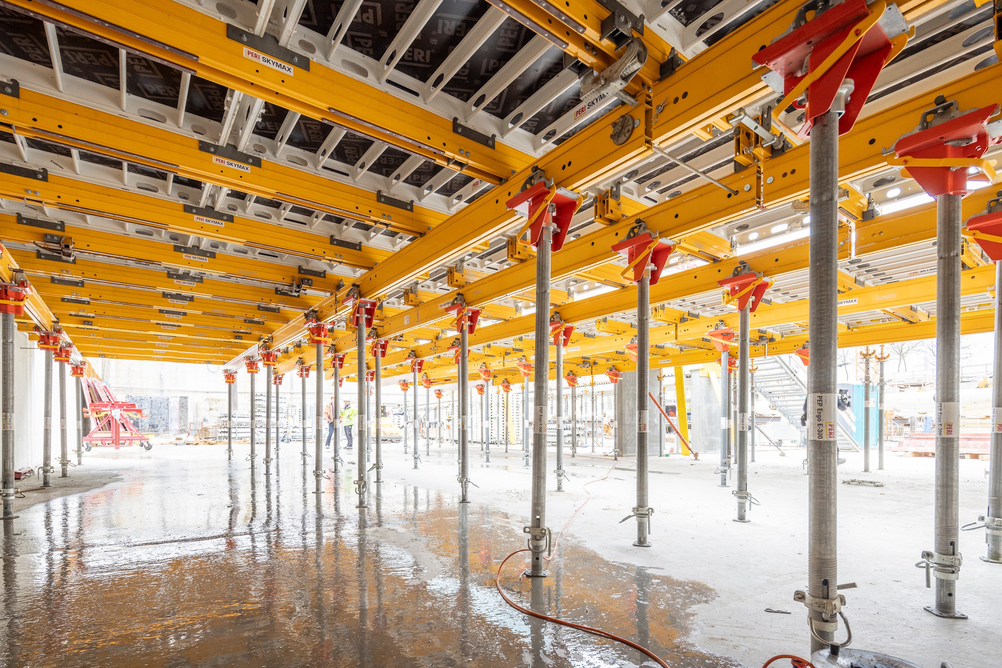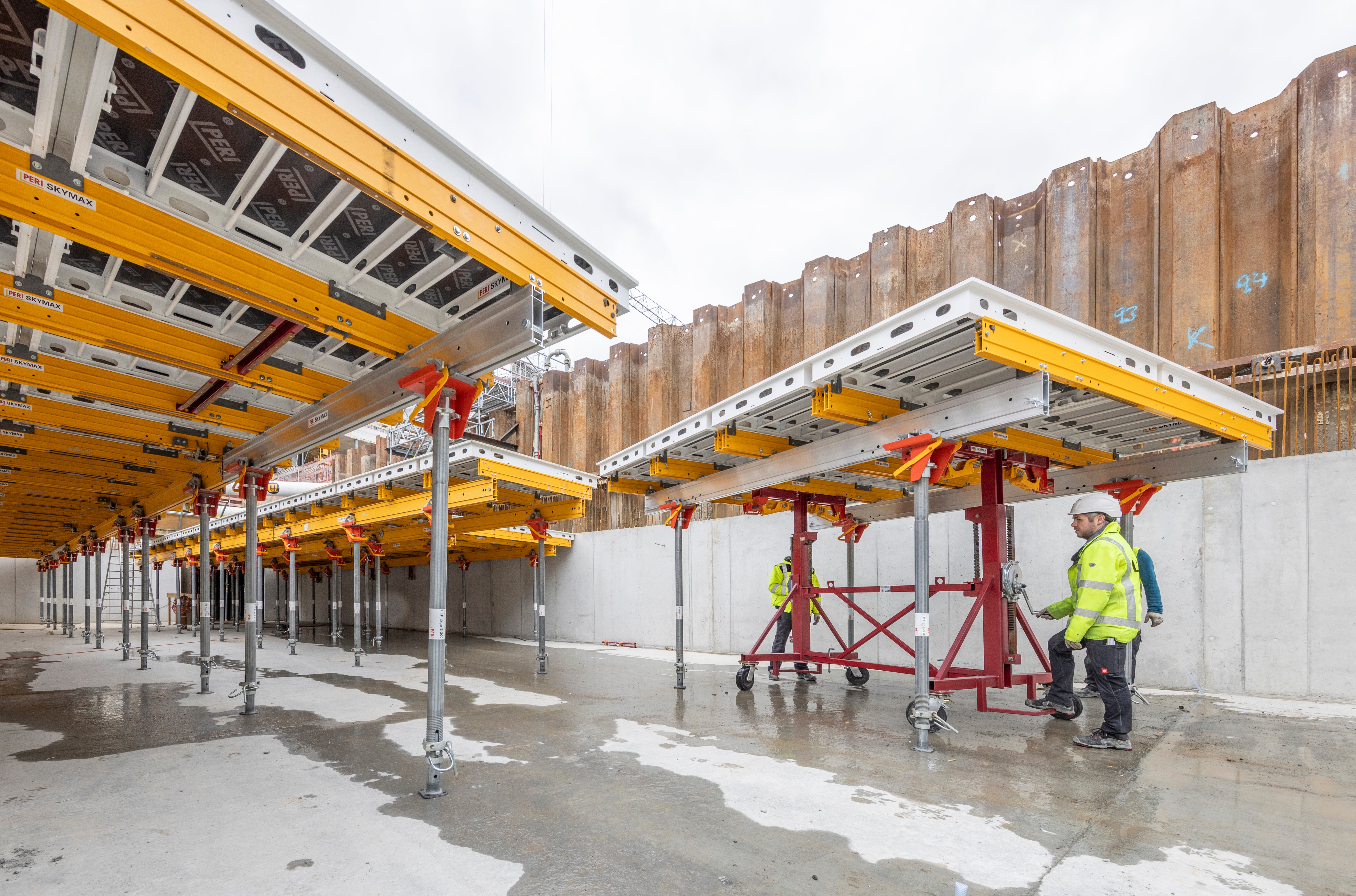 Ramseier vertraut rund um den Bau der Einstellhalle auf diverse PERI Schalungs-Systeme wie SKYDECK, MAXIMO MX 18 und SKYMAX.