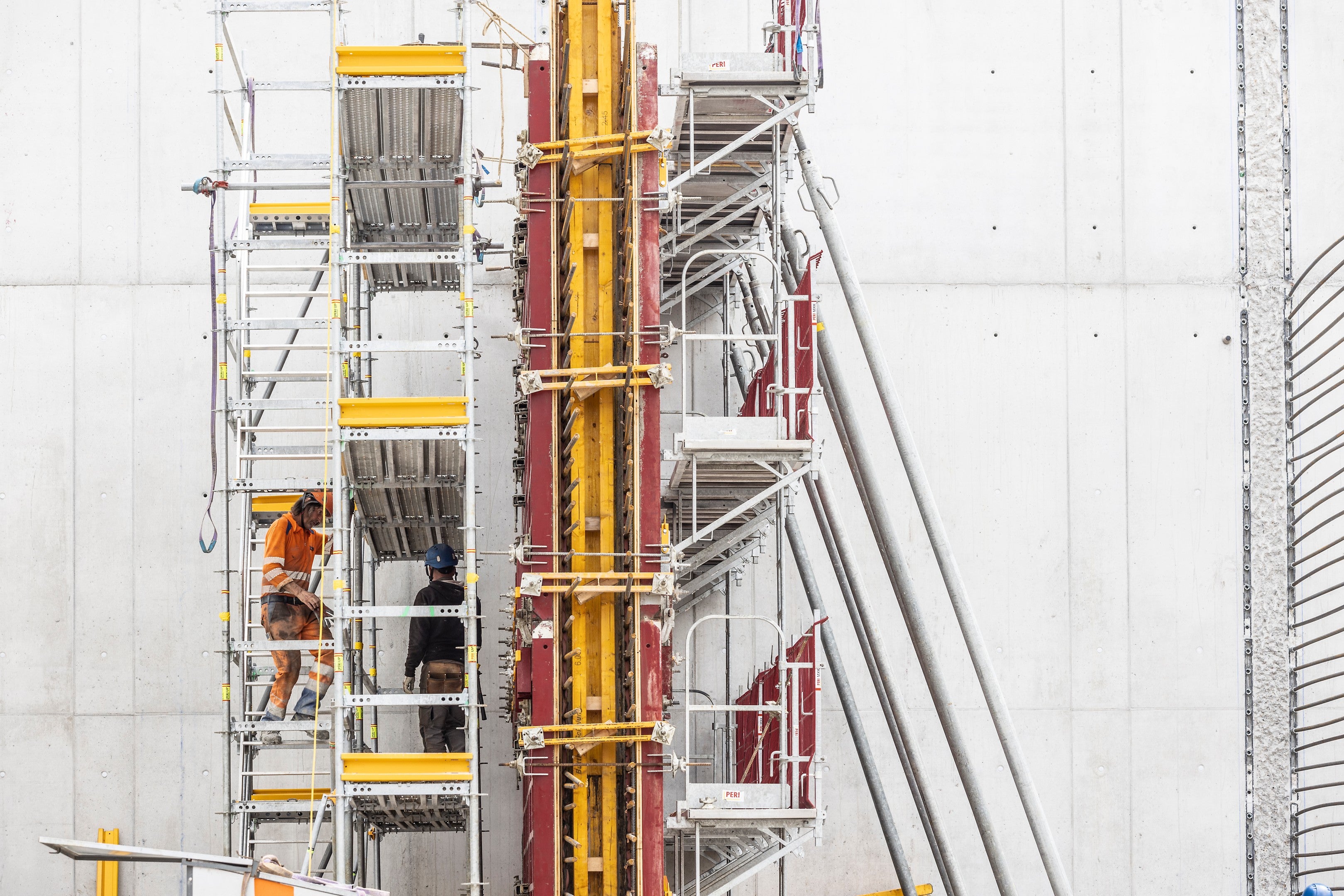 Der Zugang zu den Kletterschalungen erfolgt ebenso über die PERI UP Treppentürme.