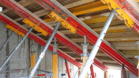 Die Kernbauteile des VARIOKIT Ingenieurbaukastens sind Stahlriegel, Kletterschienen und Schwerlastspindeln.