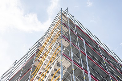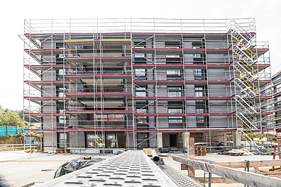 324´000 kg PERI UP Easy Stiel Fassadengerüst Material im Einsatz.