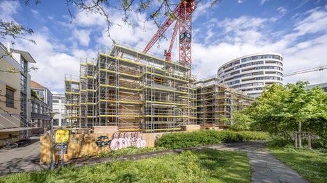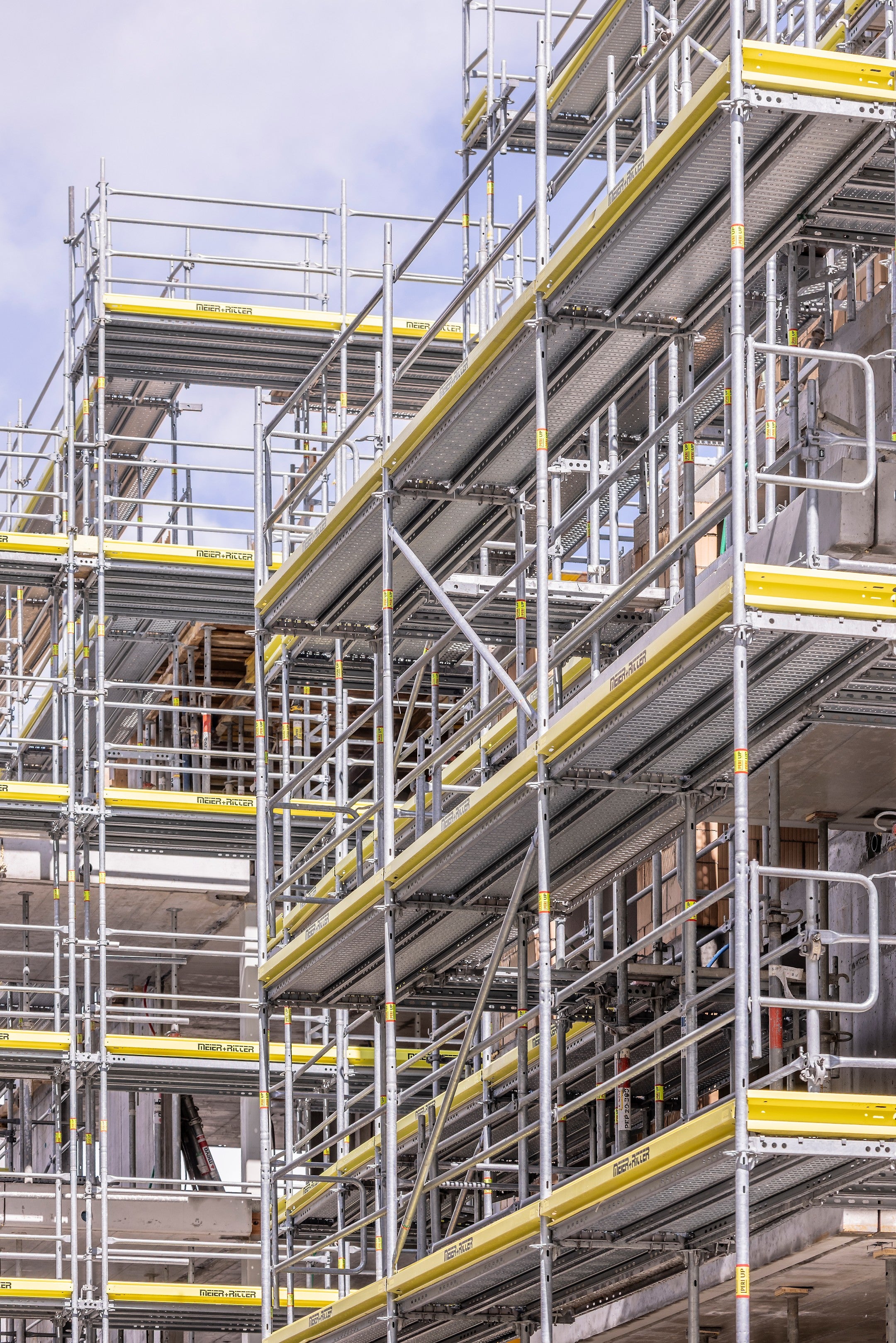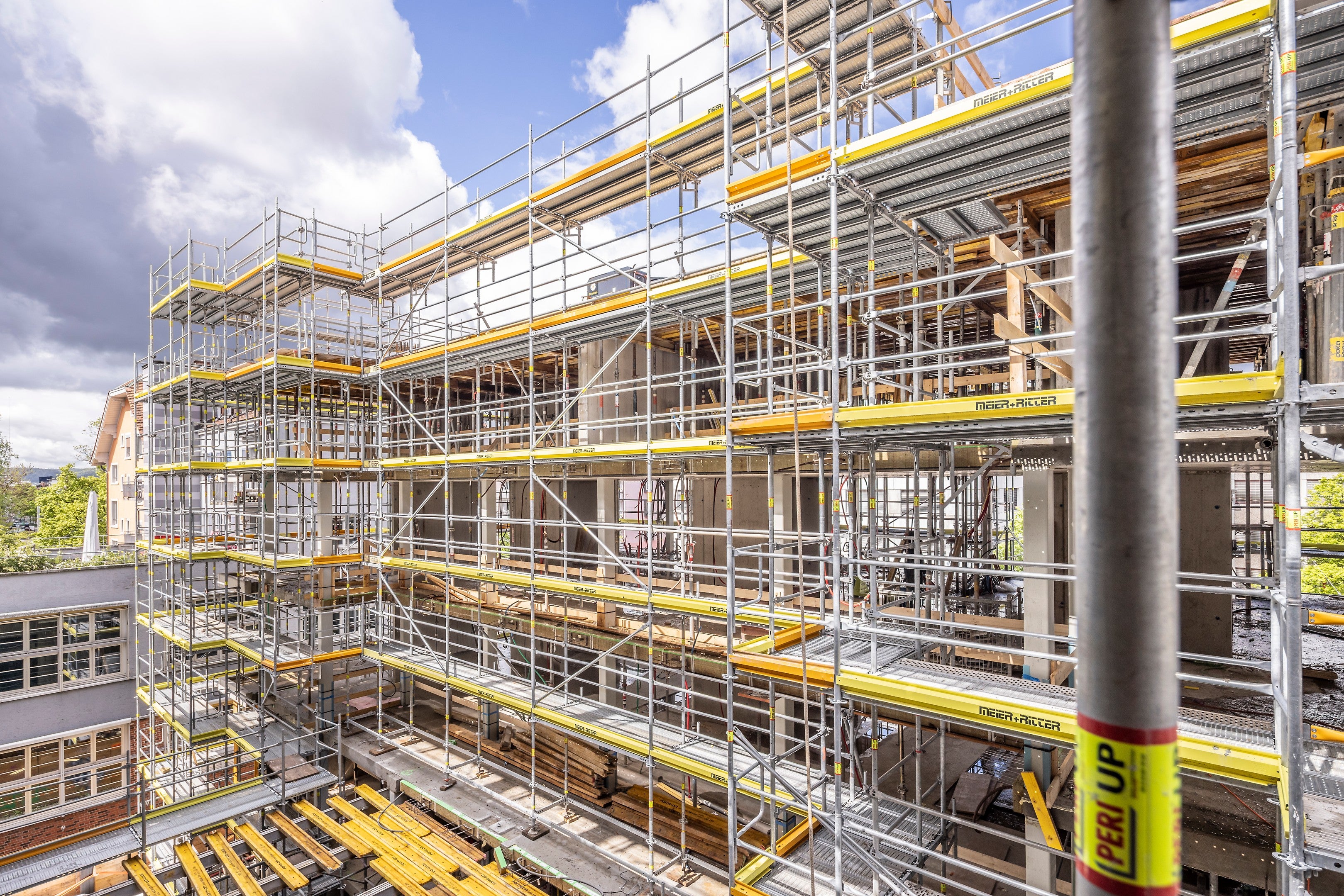 Das Projekt bringt einige Herausforderungen mit sich – viele Ecken, wenig Platz und unterschiedliche Etagen. Doch mit dem modularen Aufbau und der Flexibilität von PERI UP Easy können auch komplexe Eckausbildungen effizient umgesetzt werden.