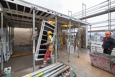 So kann die Waller AG Bauunternehmung mit der Einschalhilfe Deckenhöhen bis mindestens 3,80 m sicher schalen.