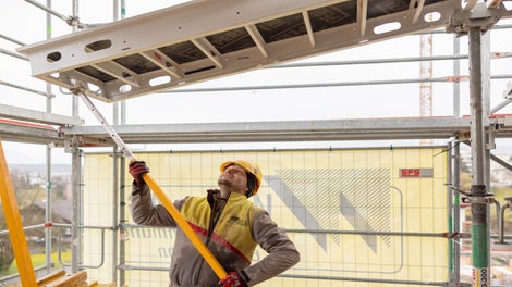 Nicht nur die maximal 32 kg leichten Paneele beschleunigen den Bauprozess – auch der schnelle und einfache Richtungswechsel und die verschiedenen Möglichkeiten der Passflächenschliessung bringen Zeitersparnisse mit sich.
