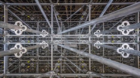 La tour d’étaiement PERI UP peut être réglée au maximum dans les trois dimensions avec une dimension de grille uniforme.