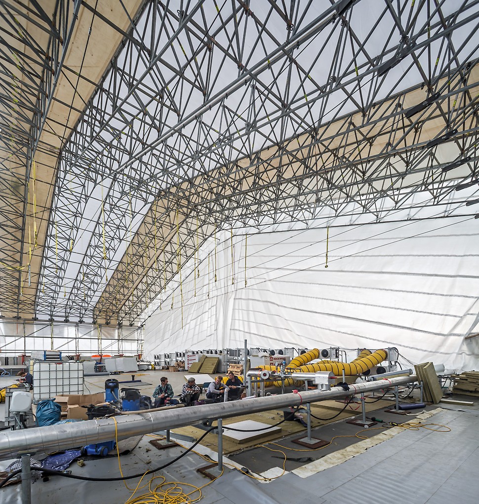 Tetto di protezione dalle intemperie PERI UP per grandi luci in uso