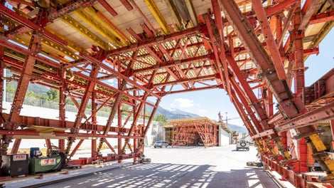 Intorno alla nuova costruzione delle due rampe del ponte esistente, nonché alla nuova costruzione dell'area di attraversamento del ponte e delle nuove rampe, supportiamo il Gruppo Frutiger con materiale per ponteggi PERI UP.