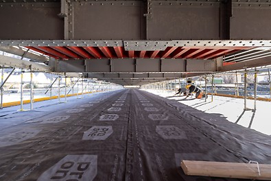 PERI UP Flex kam als Hängegerüst unter der Brücke zum Einsatz.